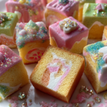 - Once cooled, cut the cake into small, bento-sized pieces and decorate with fondant or frosting as desired.