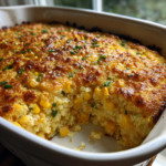 Corn casserole is a baked dish made primarily with corn as the main ingredient, mixed with a few simple components such as cornbread mix, sour cream, and cheese. It has a creamy, custard-like texture that is both satisfying and comforting. This dish is commonly served at holiday celebrations, family gatherings, and potlucks, where it often becomes a highlight on the dining table.