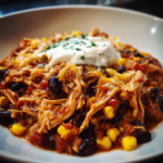 As the savory scent wafts through your home, you can almost taste the tender, juicy chicken mingled with perfectly seasoned black beans and sweet corn. Each bowl you serve is a delightful combination of textures and flavors that will have everyone asking for seconds. The creamy toppings of sour cream and guacamole elevate the dish even further, creating a truly irresistible meal.
