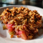 As you prepare this dish, the smell of sweet, buttery oats baking in the oven will fill your home, inviting everyone to the table. The contrast of the tender rhubarb and the crispy topping creates a satisfying texture, while the balance of tart and sweet flavors will dance on your palate. Each bite offers a delightful experience, making it hard to resist going back for more!