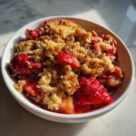 Now, let’s dive into the health benefits of the main ingredients in this delicious crisp. Strawberries are packed with Vitamin C, which is essential for a healthy immune system. They also contain antioxidants that help fight free radicals in the body. Rhubarb, on the other hand, is a great source of Vitamin K, which plays a crucial role in bone health. It also provides dietary fiber, promoting good digestion. The combination of these fruits creates a dessert that is not only indulgent but also loaded with nutrients. Did you know that rhubarb has anti-inflammatory properties? This makes it a perfect addition to your diet, especially when paired with the sweetness of strawberries.