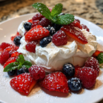 - Gently fold the whipped cream into the mixed berries until well combined.