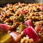 When you take a bite, you’ll experience the soft, tender rhubarb beneath a crunchy, oat-rich topping that is simply irresistible. The contrasting textures of the juicy, tangy filling and the crispy, buttery topping create a delightful experience that is sure to please your palate. It’s a dessert that embodies the essence of spring and summer, making it perfect for gatherings or a cozy night in.