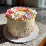 - Decorate the cake using piping bags, edible flowers, sprinkles, or any decorative cake toppers you prefer.