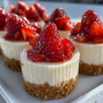 Strawberry cheesecake cups are individual servings of cheesecake made with a graham cracker crust, a creamy filling, and fresh strawberries. These delightful desserts are served in cups, making them easy to assemble and perfect for sharing. They combine the traditional flavors of cheesecake with the freshness of strawberries, resulting in a delightful treat that’s visually appealing and satisfying.