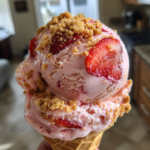 A creamy and delicious strawberry cheesecake ice cream that perfectly blends the flavors of fresh strawberries, rich cream cheese, and a graham cracker crust.